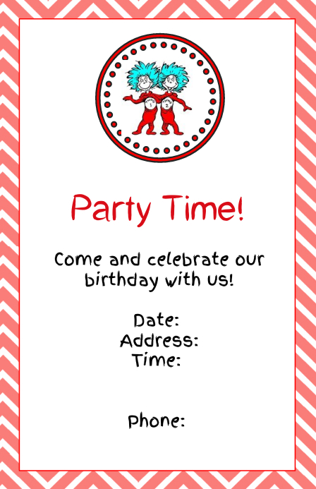 FREE Thing 1 and Thing 2 dr. Seuss invitation templates | Free Thing 1 and Thing 2 Invitation Template | PosterMyWall.