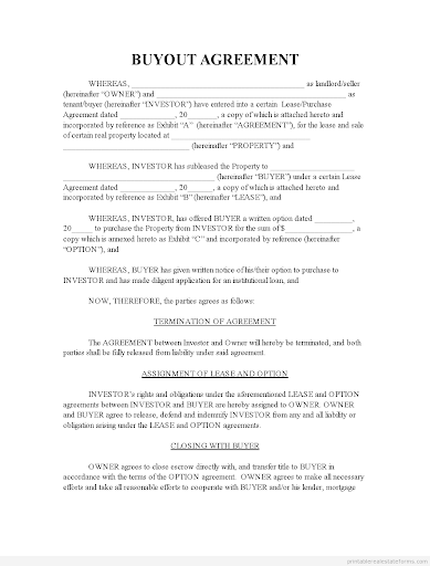 Free Buyout Agreement Printable Real Estate Forms | Printable Real Buyout Agreement Sample – laustereo.com.