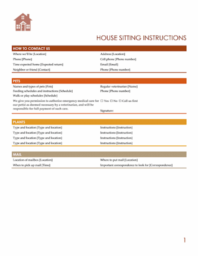 House sitting instructions Templates Office.| House house sitter checklist template Major.magdalene project.org.